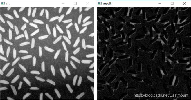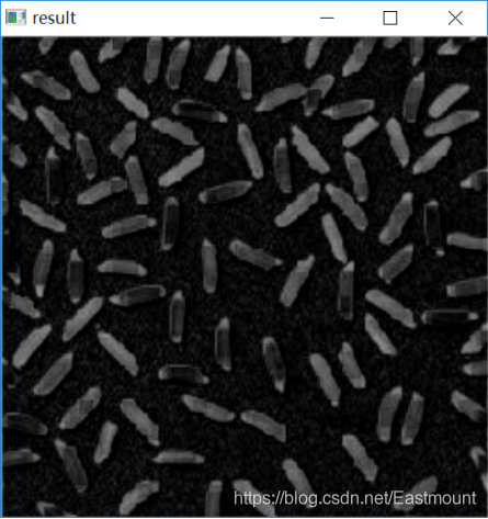 其运行结果如下,它有效地将米粒与背景分离开来。