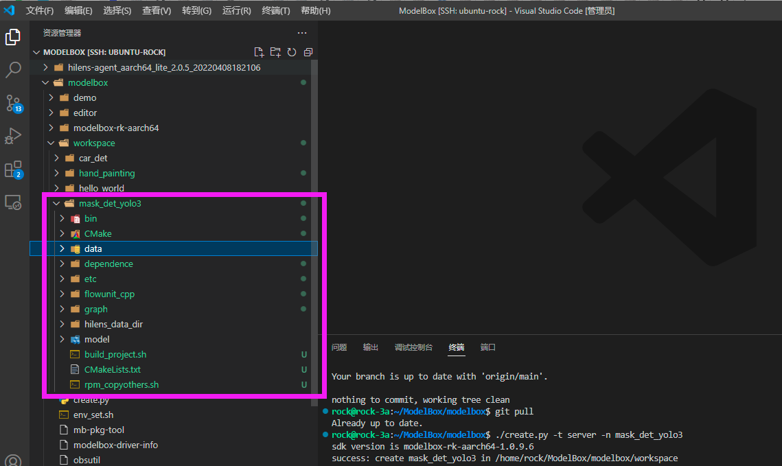 打开VS Code,连接到ModelBox sdk所在目录或者远程开发板,开始进行口罩检测应用开发。