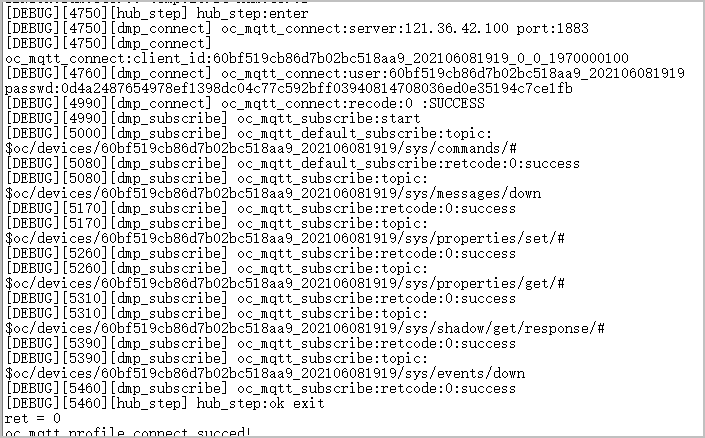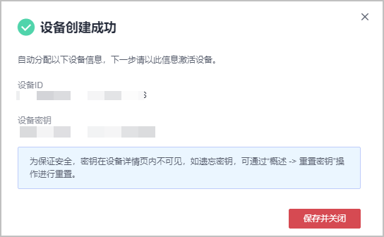 设备注册成功后,请妥善保管好设备ID和密钥,用于设备接入平台认证。