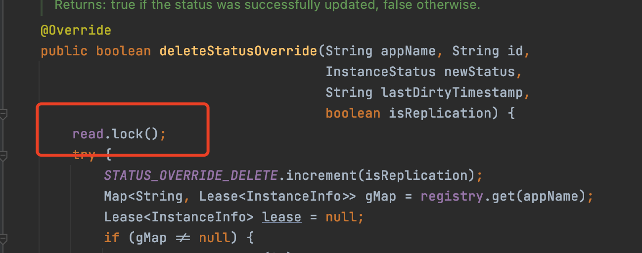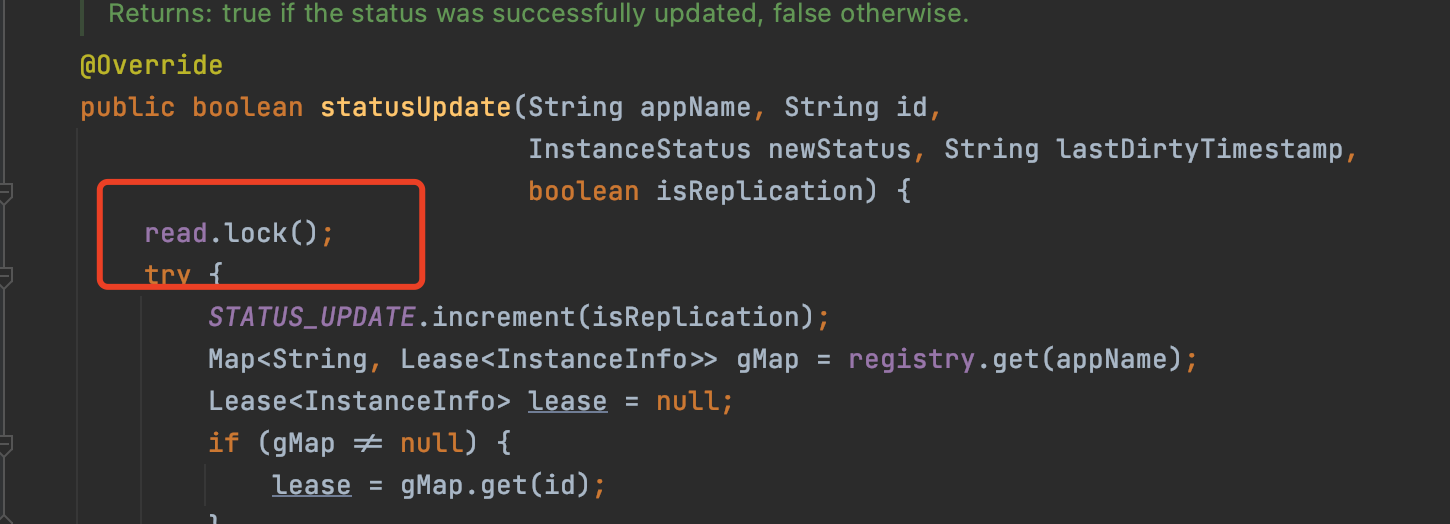 上面说完了AbstractInstanceRegistry比较重要的成员变量,其中就有一个读写锁,也是本文的主题,所以接下来看看哪些操作加读锁,哪些操作加写锁。