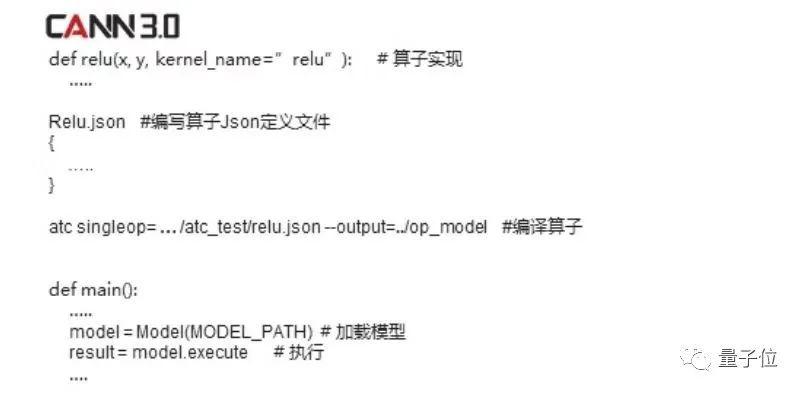 又例如,进一步支持混合编程。相比于3.0的手动加载模型,5.0版本在APP中可以直接调用算子函数,自动完成编译加载并执行: