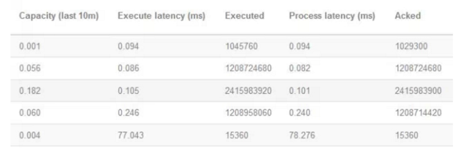 在Storm的UI中,对每个Topology都提供了相应的统计信息,其中有3个参数对性能来说参考意义比较明显,包括Execute latency、Process latency和Capacity。