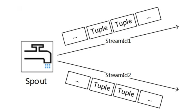 图中的Spout就发射出去了两条数据流。