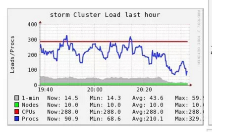 目前,只用1台Nimbus + 9台Supervisor支撑了了20多个业务,峰值的时候大概可以跑到40万TPS。