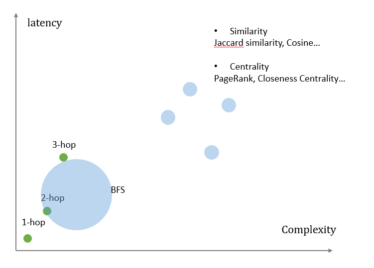 实际的场景中,我们需要同时兼顾算法的效果和执行成本。这也是很多使用场景所面临的trade-off问题。正如我们前面所说,大部分情况下不需要用到非常高深的图算法,特别是在在线任务中,我们更看重时延和效率。