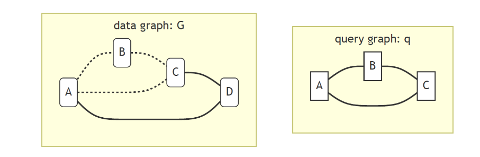 除此以外,subgraph matching也是一个图查询与图算法同时存在的研究课题。如上图,我们输入目标子图q,在图G中寻找其同构图,这其实是一个NP-Hard问题。
