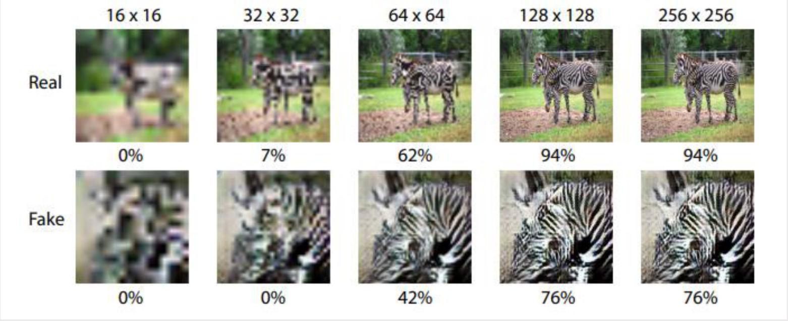 从低分辨率通过插值生成的高分辨率图片,其本质上没有增加多余信息,只是低分辨率的模糊版。结合这样的思路,高分辨率的图片提供了更多的信息,这些信息结合到AC-GAN结构,每个生成图片都有其对应的标签,因而这个更多的信息,可以通过分类来表明,也就是说更多的信息,可以用于分类,也就是文中所说的分辨力。