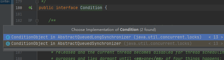 这个接口的实现类是ConditionObject,放在AQS抽象类的内部类中