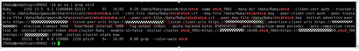 在Ruby用户下查看etcd的IP和端口: ps ux | grep etcd