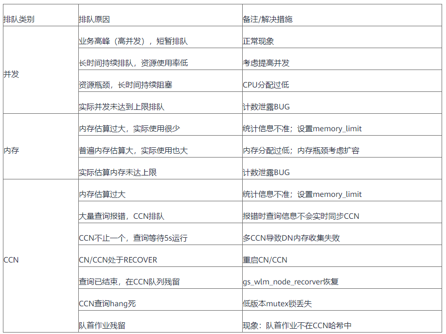- CCN全局可用内存不足导致排队,此时需特别关注是否有查询估算内存过大;