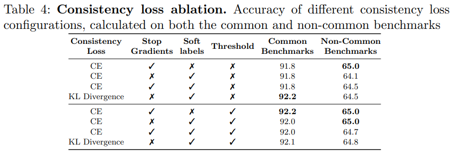 可以看到,使用交叉熵loss作为一致性约束loss效果最好。