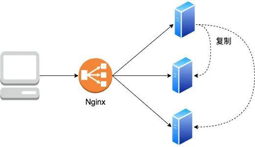 如图示:客户端请求后,由负载均衡器(如 Nginx)来决定到底打到哪台机器