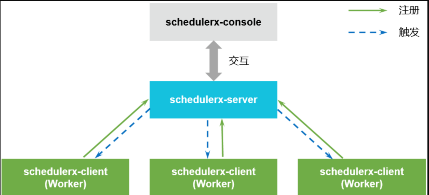 - Schedulerx-client 是任务调度的客户端。每个接入客户端的应用进程就是一个的 Worker。 Worker 负责与 schedulerx-server 建立通信,让 schedulerx-server发现客户端的机器。 并向schedulerx-server注册当前应用所在的分组,这样 schedulerx-server 才能向客户端定时触发任务。