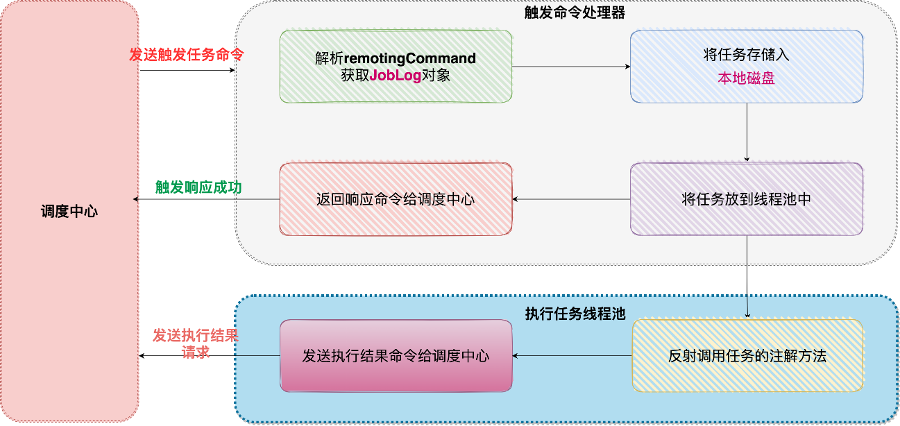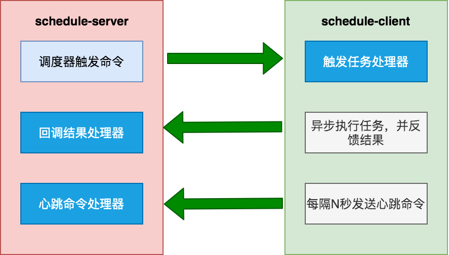 调度中心需要注册两个处理器:回调结果处理器CallBackProcessor和心跳处理器HeartBeatProcessor 。执行器需要注册触发任务处理器TriggerTaskProcessor 。
