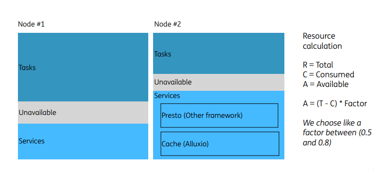 在使用过程中,需要避免批量计算任务与自有服务出现资源抢占与冲突的问题。比如:我们集群中有两个可用节点,集群中需要部署一个统一的服务层对外提供服务,比如Presto,或者类似Alluxio的缓存服务。但是在批量计算调度时,集群的资源空间有可能全部被占用,我们将无法完成自有服务的部署或升级,为此我们增加了空间可用系数相关配置,为集群预留一些备用空间,用于自有服务的部署使用。