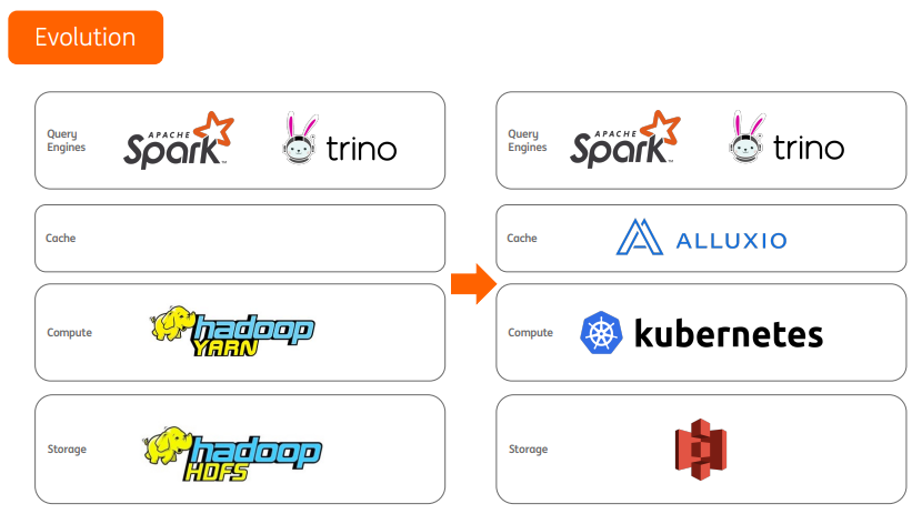 在我们之前的集群管理上,会把Hadoop和Kubernetes的调度分开,基本上所有的spark作业都会运行在Hadoop集群中,其他的一些任务和算法会运行在Kubernetes集群,我们的目标是希望所有的任务全部运行在Kubernetes集群,这样管理起来会更简单。