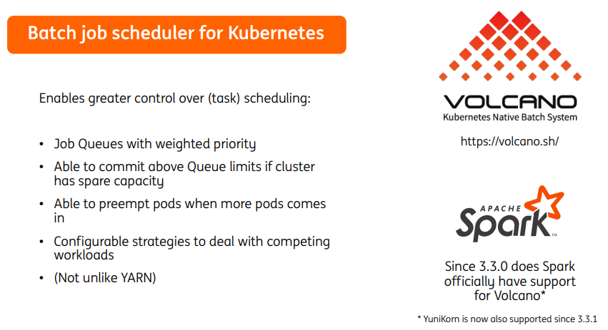 Volcano的引入,补齐了Kubernetes平台对批处理作业的调度管理能力,并且自Apache Spark 3.3版本以来,Volcano被作为Spark on Kubernetes的默认batch调度器,安装使用更方便。