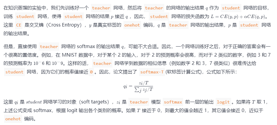 本文只简单介绍这个领域的开篇之作-Distilling the Knowledge in a Neural Network,这是蒸 "logits"方法,后面还出现了蒸 “features” 的论文。想要更深入理解,中文博客可参考这篇文章-知识蒸馏是什么?一份入门随笔。