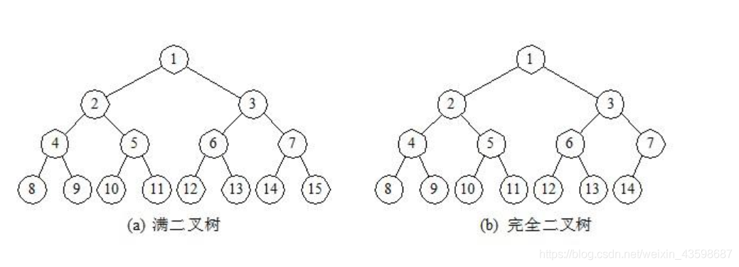 (1)满二叉树:一棵高度为h,且含有2^h - 1个节点的二叉树。
