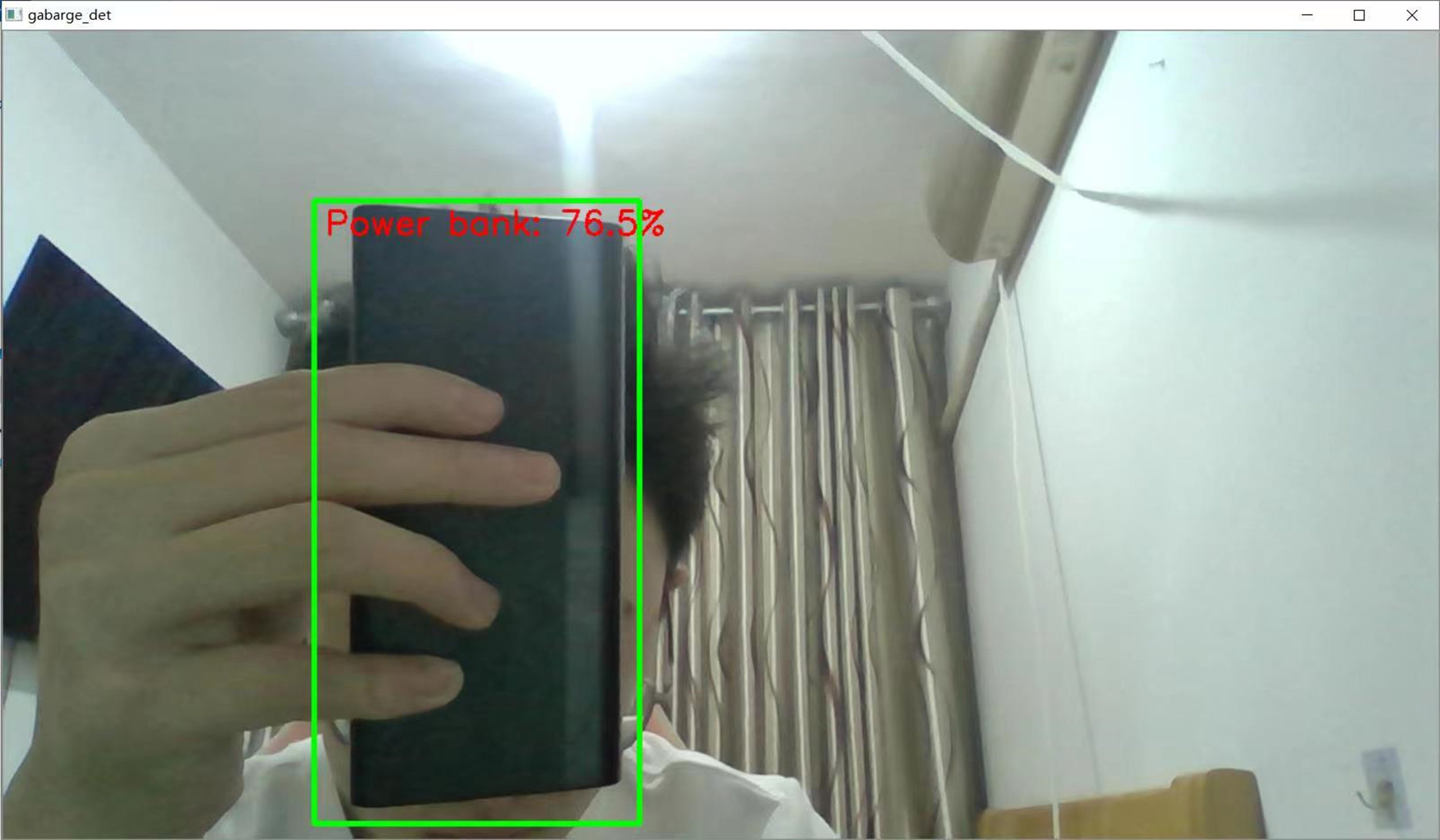 即使用编号为0的摄像头(默认为PC自带的摄像头),输出画面显示到名为garbage_det的本地屏幕窗口中。