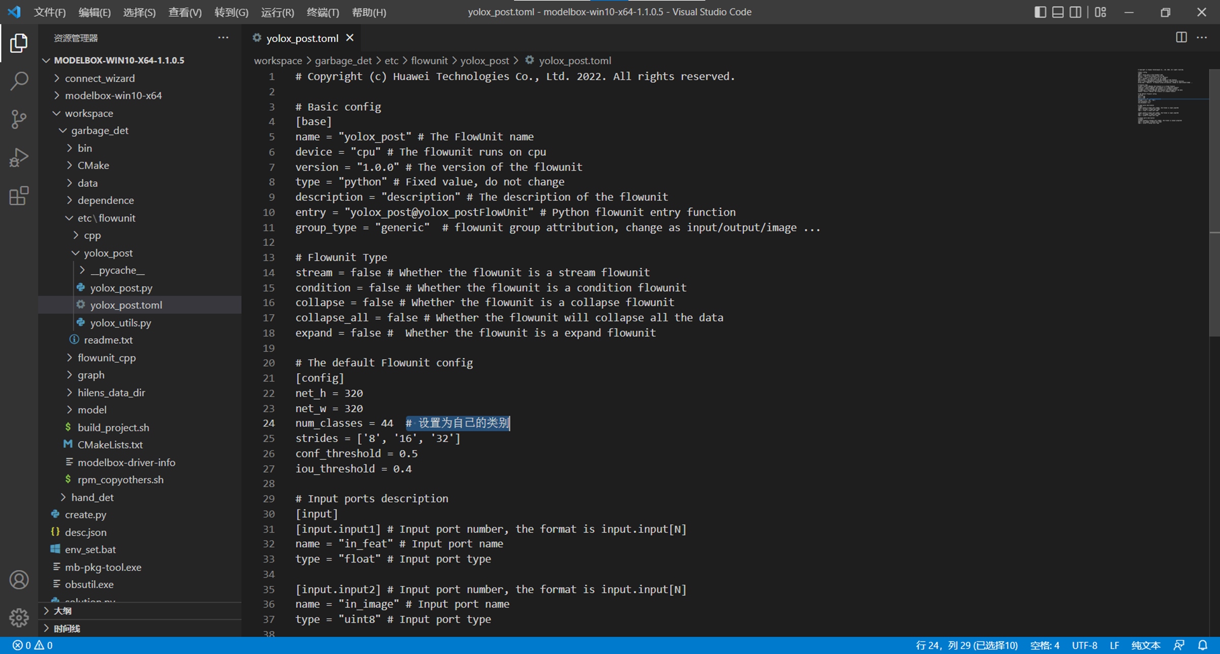 a. 修改yolox_post.toml流程图,将其内容修改为(以Windows版ModelBox为例):