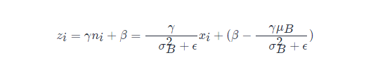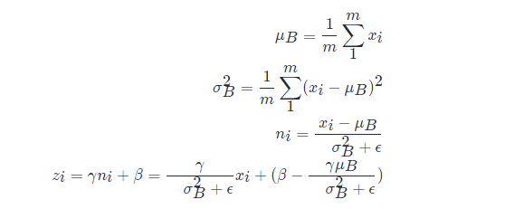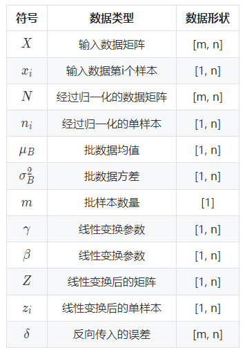 以上公式乘法都为元素乘,即 element wise 的乘法。其中,参数 γ,βγ,β 是训练出来的, ϵϵ 是为零防止 σB2σB2 为 00 ,加的一个很小的数值,通常为1e-5。公式各个符号解释如下: