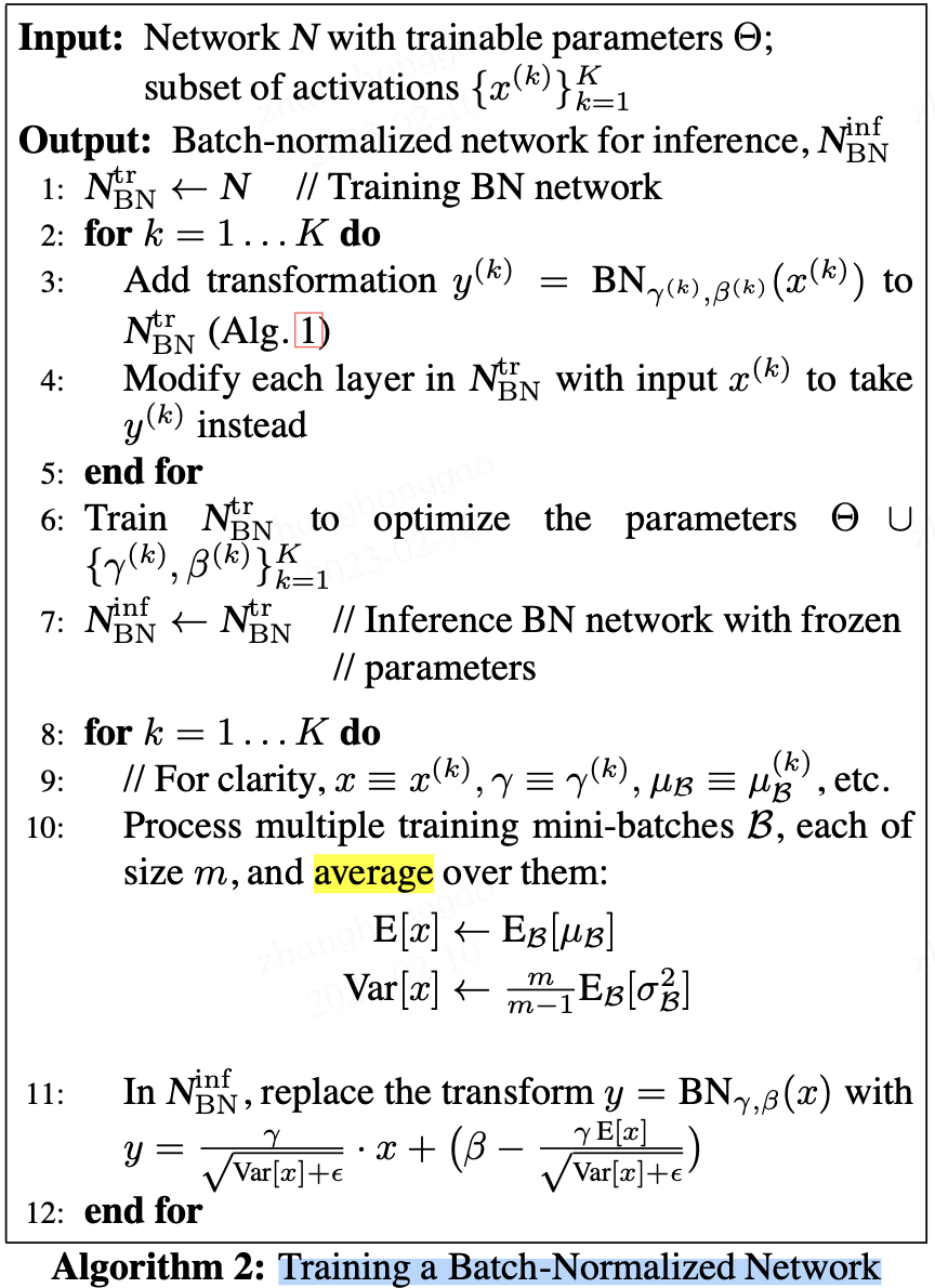 在论文中,训练一个带 BN 层的网络, BN 算法步骤如下图所示:
