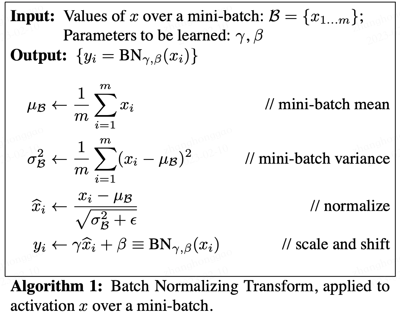 论文中的公式不太清晰,下面我给出更为清晰的 Batch Normalizing Transform 算法计算过程。