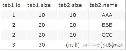 select * form tab1 left join tab2 on (tab1.size = tab2.size) where tab2.name=’AAA’