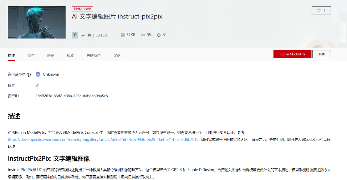 我们在ModelArts中发布了一个notebook方便大家玩一玩,同时也将对模型的实现方法进行简单介绍: