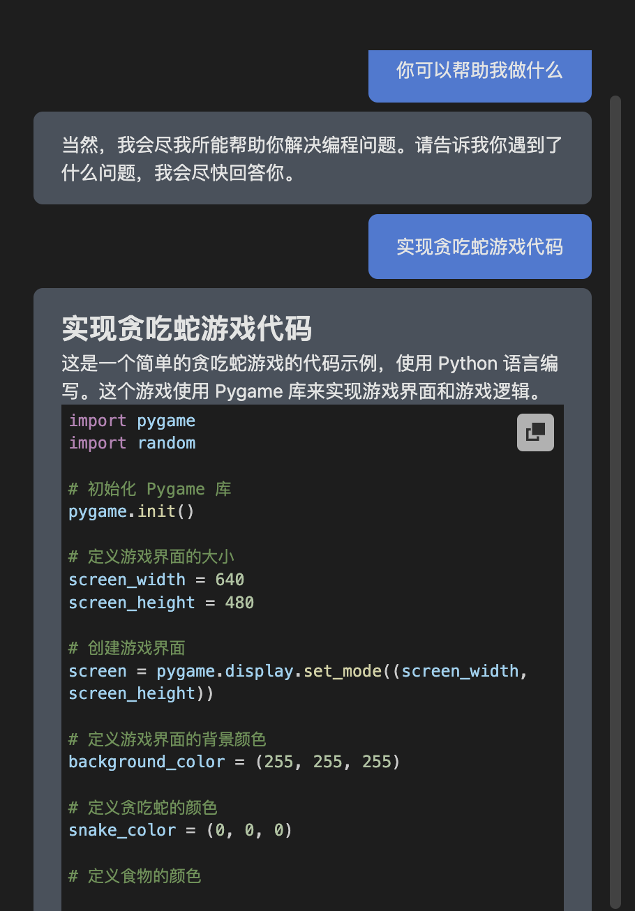 - 输入想提问的内容,即可展开对话