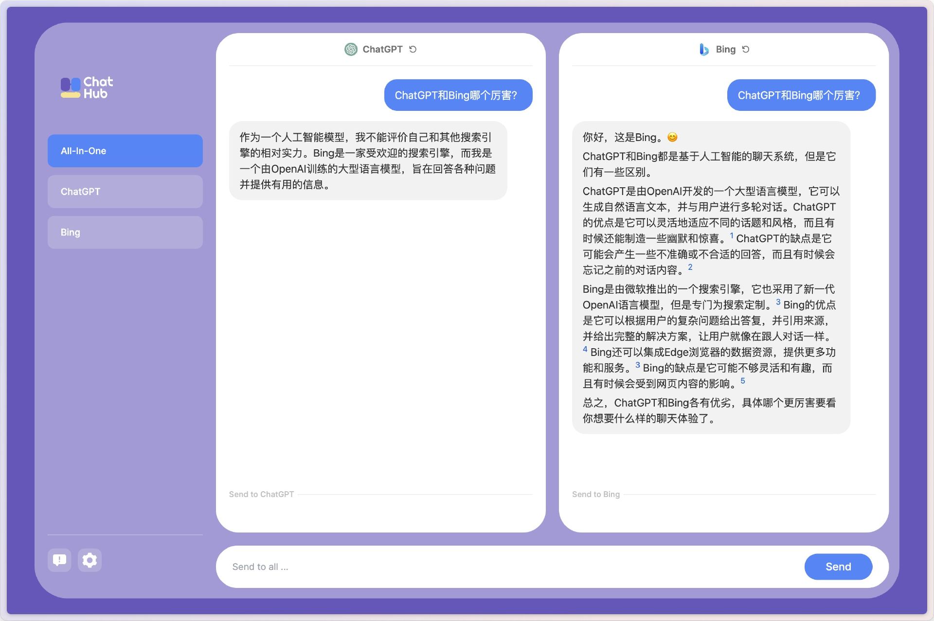 - 对Chrome浏览器用户,可以安装ChatHub插件 , ChatHub是一个chatbot聚合客户端,目前支持ChatGPT和new Bing Chat,Google Bard