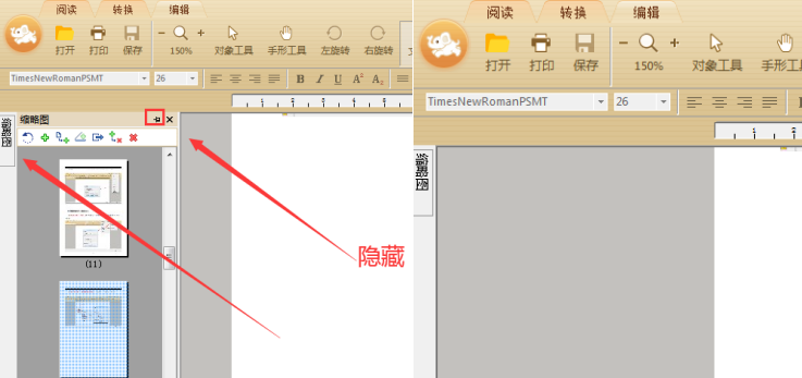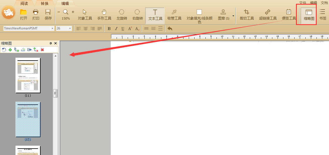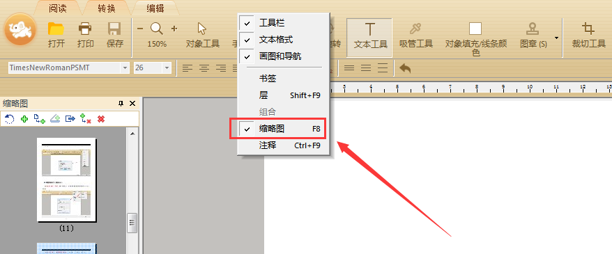 除此之外还可以通过直接选择工具栏中的“缩略图”打开或隐藏缩略图面板;