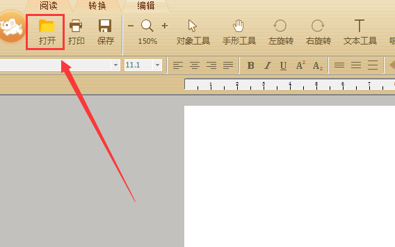 运行极速PDF编辑器后,点击软件左上角的“打开”并选择PDF文件打开。