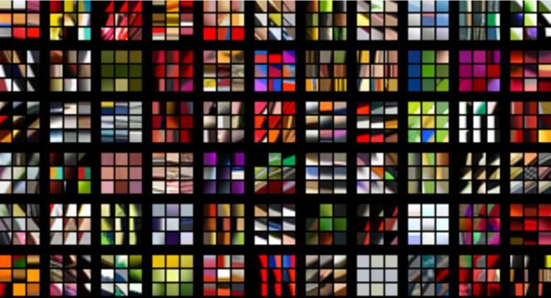 2012年多伦多大学的Krizhevsky等人构造了一个超大型卷积神经网络[1],有9层,共65万个神经元,6千万个参数。网络的输入是图片,输出是1000个类,比如小虫、美洲豹、救生船等等。这个模型的训练需要海量图片,它的分类准确率也完爆先前所有分类器。纽约大学的Zeiler和Fergusi[2]把这个网络中某些神经元挑出来,把在其上响应特别大的那些输入图像放在一起,看它们有什么共同点。他们发现中间层的神经元响应了某些十分抽象的特征。