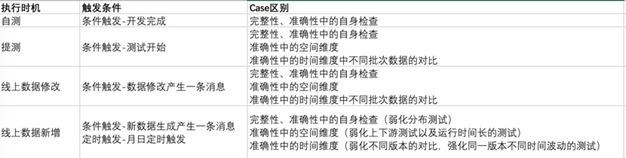 - 执行时机:执行时机和数据测试集成化,工具平台化有关系,集成环境需要触发条件;