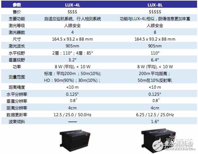 IBEO是最早涉足车载激光雷达并提供路上物体追踪、识别的企业之一。这家德国公司成立于1998年,两年后就被传感器制造商Sick AG收购。期间除了继续研发激光扫描技术,在当时就开始了自动驾驶项目的尝试,并与欧洲委员会合作开发了十字路口安全驾驶辅助产品。2009年IBEO从Sick AG独立出来,一年后又与法国汽车零部件制造商法雷奥合作了SCALA,其他产品还包括是miniLUX、LUX-4L及LUX-8L。其中,LUX-4L与LUX-8L专门用于ADAS无人驾驶系统。