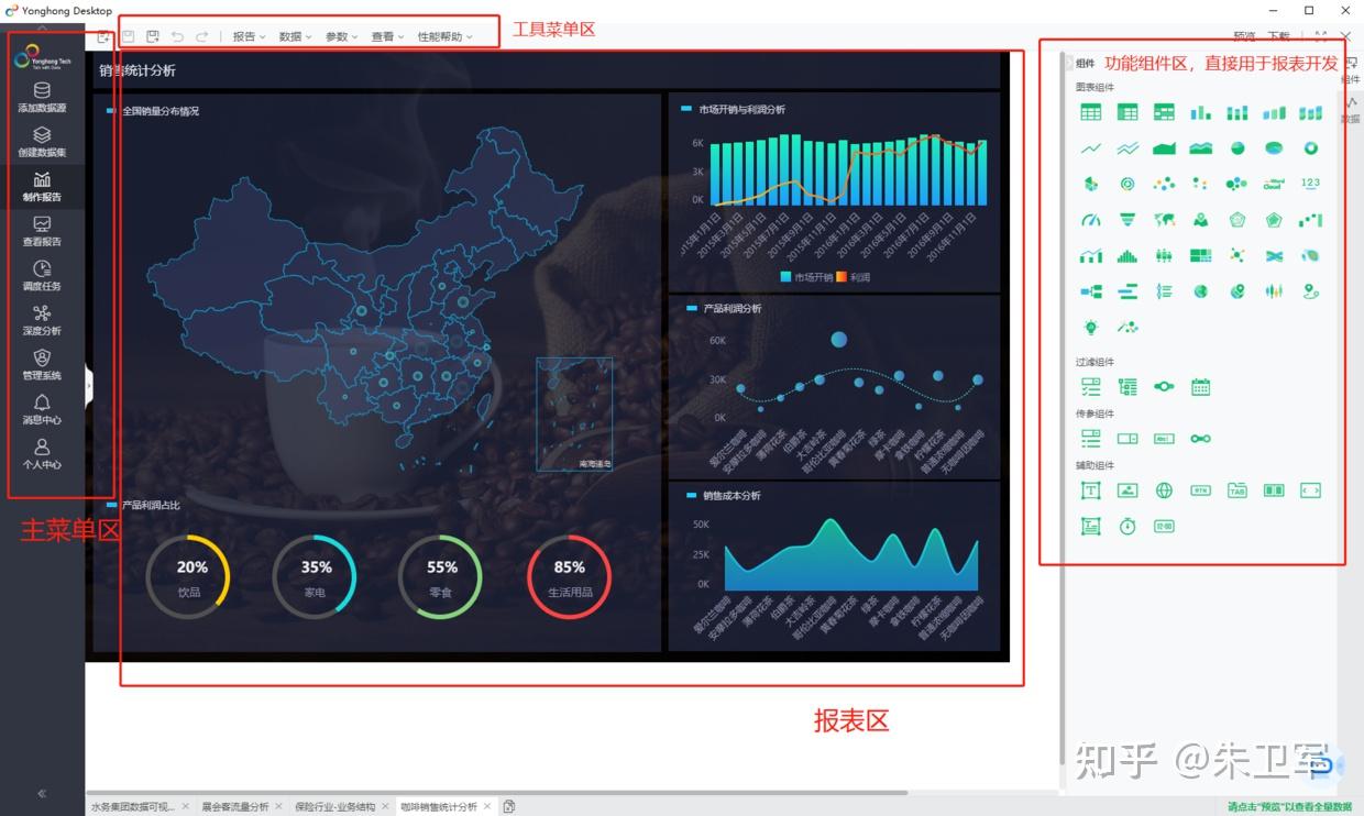 他用的是永洪BI,还算主流的国内BI服务产品,和powerbi、tableau处于不同赛道。
