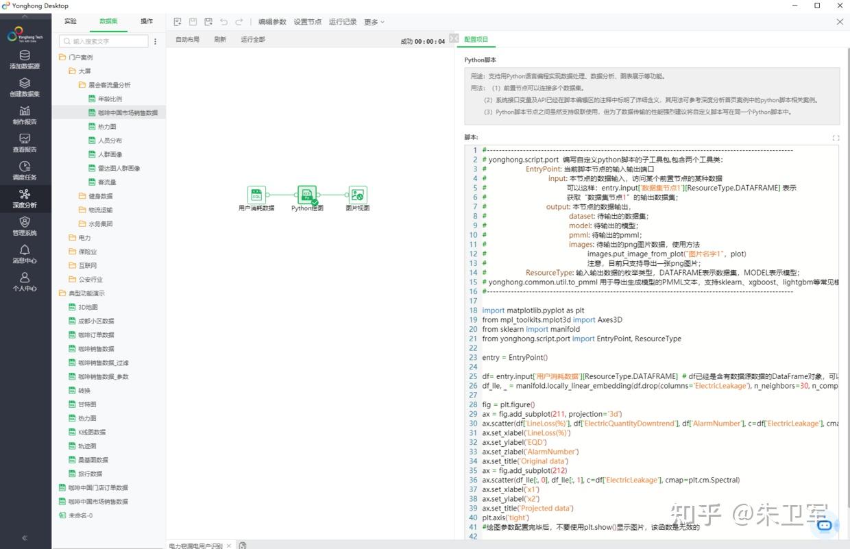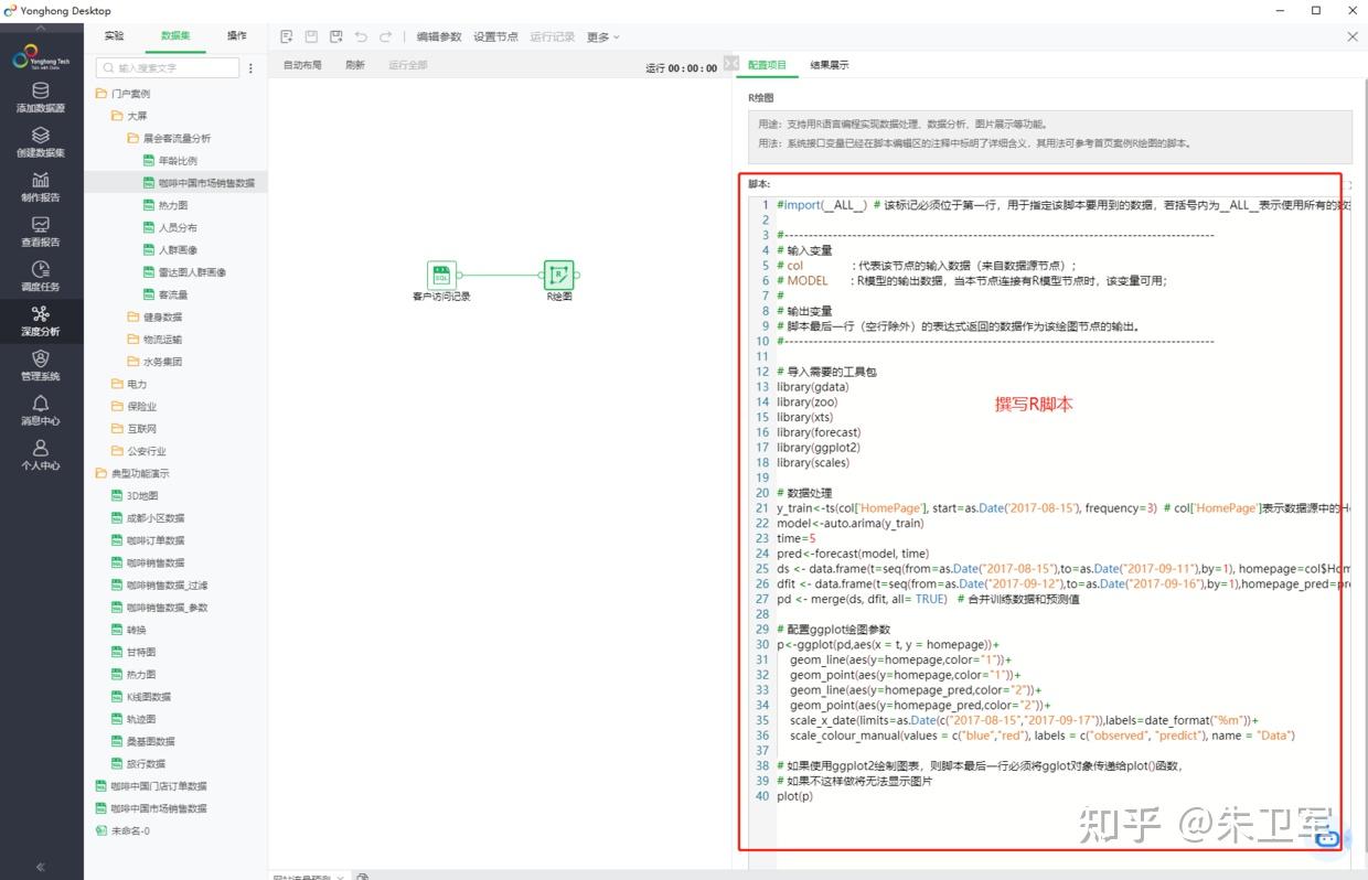 接着,他说厉害的来了,永洪BI可以用R或者Python写算法模型,来实现机器学习、商业模型、复杂可视化等。