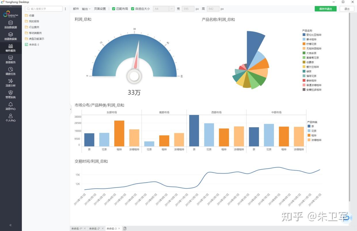 这个Demo级的报表总共花了我两小时,从刚上手到完成一个dashboard,已经算非常快了。主要是因为永洪BI的功能区比较分明,掌握整个布局,就能很容易完成一个图表。
