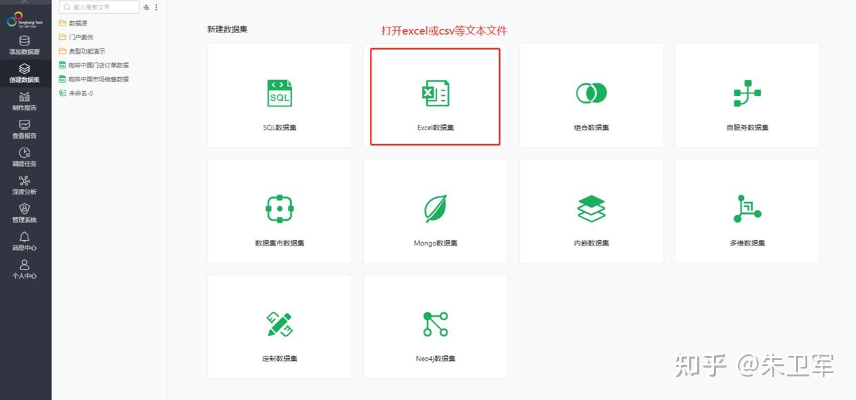 添加数据源操作非常简单,一般我们可以导入excel和文本文件。