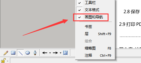 注意:如果软件没有显示这些画图工具则可能是被隐藏了,只需要在导航栏任意处右击并勾选“画图和导航”就能正常显示了。