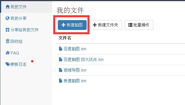第二步,新建脑图。登录后,出来如图界面,点击“新建脑图”,就进入了脑图编辑界面。