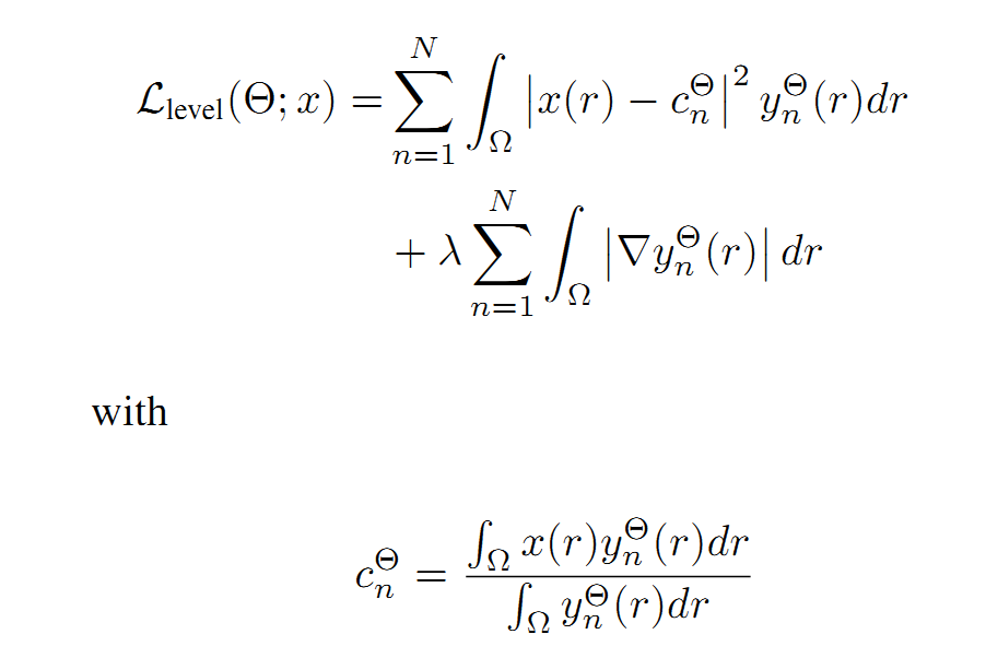 4. Caliva等人提出通过测量每个体素到对象边界的距离,并使用权重矩阵对边界误差进行惩罚。 Kim等人提出使用水平集能量最小化( level-set energy minimization)作为正则化器,再加上标准的多类交叉熵损失函数,来用于半监督的脑MRI图像分割,损失函数如下所示: