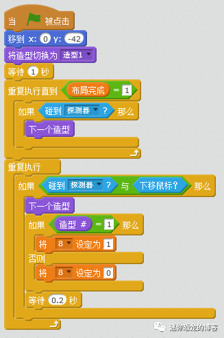 现在是最最最最重要的探测器程序了,探测器决定了布局的结果,保证不会出现死局的情况,也有着玩的时候让方块切换造型的工作: