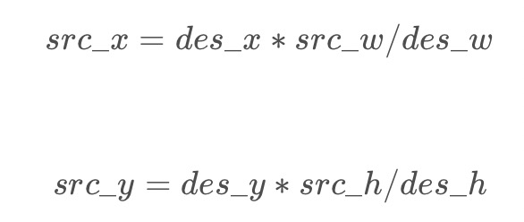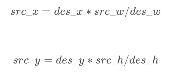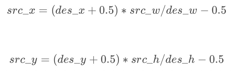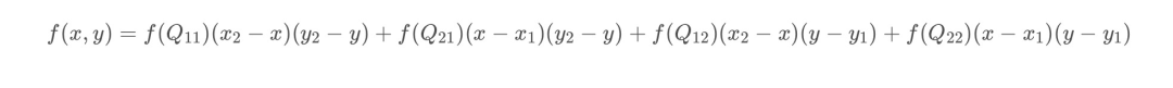 回顾一下上面双线性插值对应关系的图,不难发现,在计算中有这样的关系: