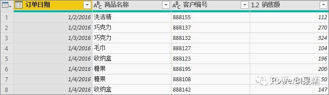 {"订单日期","商品名称","客户编号","销售额"})))