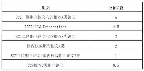 博士研究生:在读期间取得的科研成果总分值不低于5分,且其中至少有1篇SCI三区以上期刊论文。 录用和发表的学术论文计分规则如下表: