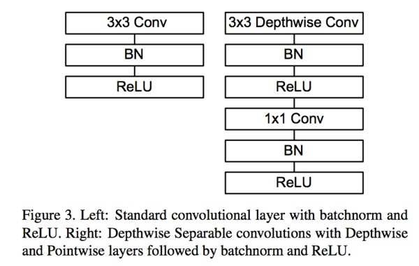 这样就把一个普通卷积拆分成了Depthwise+Pointwise两部分。其实Mobilenet v1就是做了如下转换,如图9: