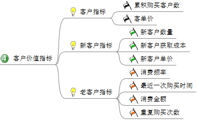 4. 客户价值指标:这里主要就是分析客户的价值,可以建立RFM价值模型,找出那些有价值的客户,精准营销等等。